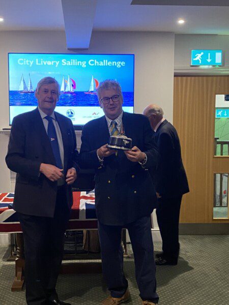 A special reception was held upstairs at SVYC to award the trophies for the racing, and with the sun having broken back through cloud for a wonderful sunset, all in convivial spirits, and the prospect of a beautiful dinner awaiting the attendees, there was a superb atmosphere. The overall winners ended up being the Turners, who were presented with The Princess Royal Challenge Cup; the Shipwrights came in 2nd and also won the first race of the day; and a special prize, kindly donated by CLYC Past Commodore Peta Walmisley and which looks remarkably like a SVYC Mermaid sailing the waves, was awarded to the highest placed CLYC member being Jim Miller of the Scriveners who came in 5th overall.